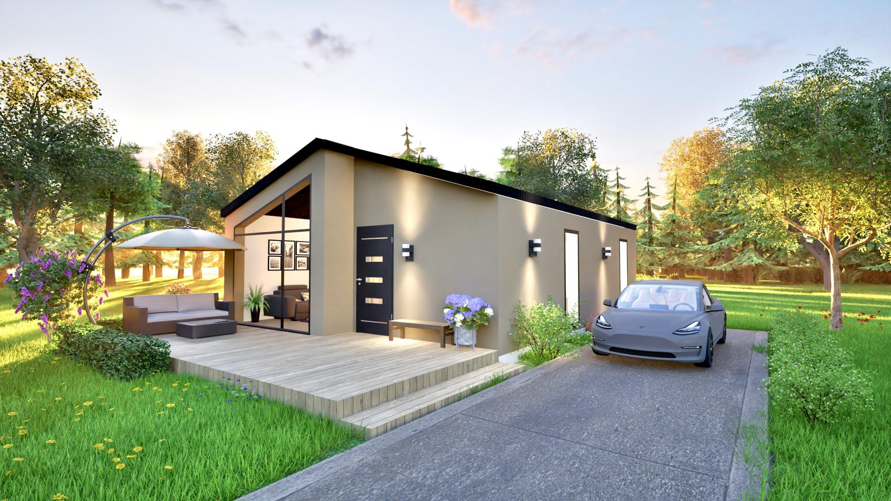 Besonders praktisch: Der modulare Aufbau erlaubt es Ihnen das Haus jederzeit zu erwei- tern – sei es für ein Homeoffice, zusätzlichen Wohnraum oder eine Sauna. Die moderne Putzfassade sorgt für eine klare, zeitlose Optik und erfordert nur wenig Pflege. Unser Grundtyp-Modell ist die perfekte Lösung für alle, die sich ein stilvolles, kompaktes Heim wünschen, das mit den eigenen Bedürfnissen mitwachsen kann.